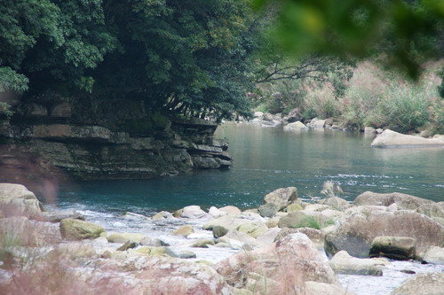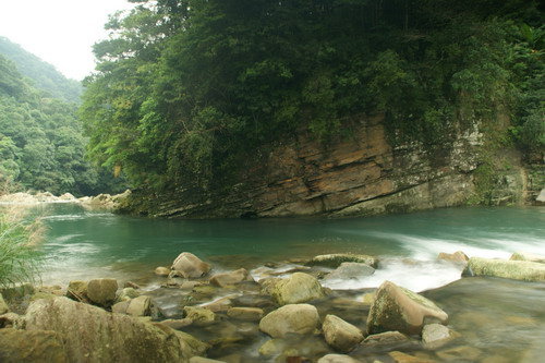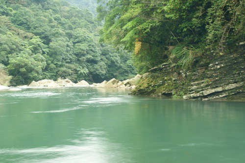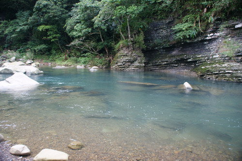 灣潭溪沿途每一轉折曲流處,皆有如此夢幻般浪漫的藍藍溪潭,可說是「夢潭」處處: