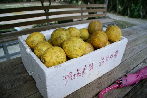 走得較快同事一直往黑龍潭前行尚未回來,我們於此休息,先享用免費柚子後,再至附近營地参觀,設施還不錯: