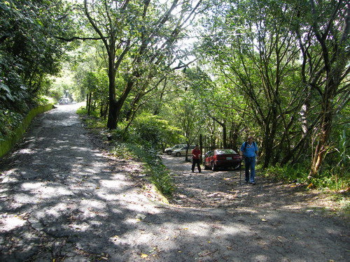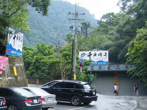 於08:20從桃園出發,上高速公路後,馬上下三峽交流道,往滿月圓森林遊樂區方向行馳,直至看到千戶傳奇看板後,取左轉而行,沒多久即至熊空候車亭,再續行往雲森瀑布登山口,產道狹窄,不易會車,很多人皆停車於此,步行約1.6公里 產道至登山口: