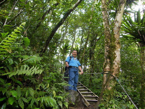 平緩山徑,至此暫告一段落,從戲水區旁有陡上山徑往雲森瀑布,好心山友架有鋁梯,方便行走: