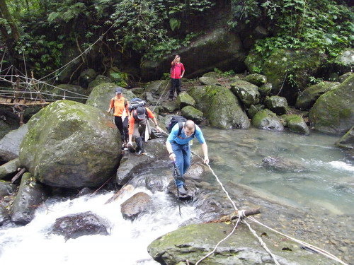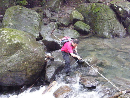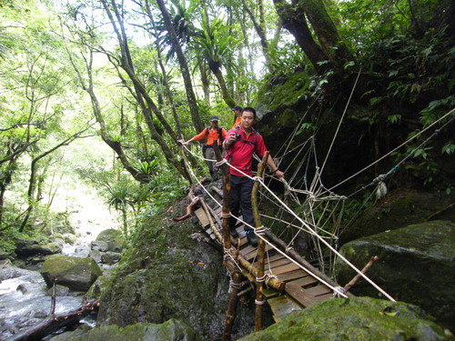 但前行往雲心瀑布時,須先過河流溪谷,看起來是很大挑戰: