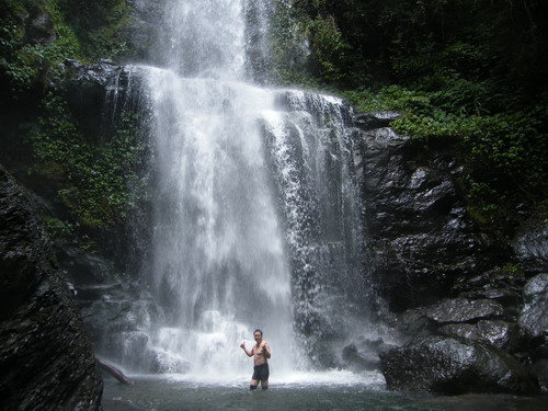 瀑布下溪谷多石,將被包安置好之後,至瀑潭享受迎面而來豐富負離子: