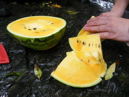 時至中午,大家也餓了,我帶一顆小玉西瓜及肉粽,坐於溪石之上,享受美食及瀑淙曼妙之聲,真是人生一大享受,餐後並合照留念: