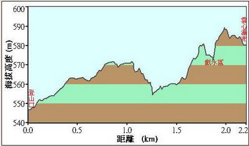 登山口(H 547M )至戲水區(H 574M ),約37分,1.9KM
