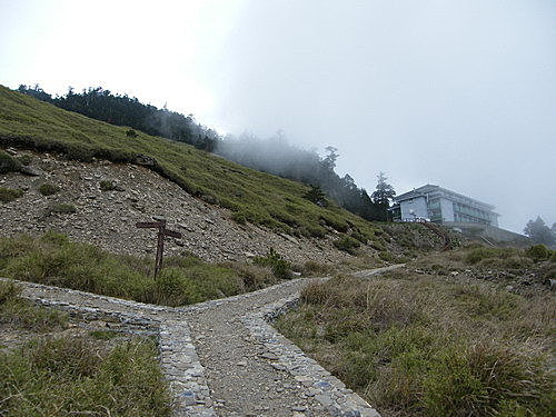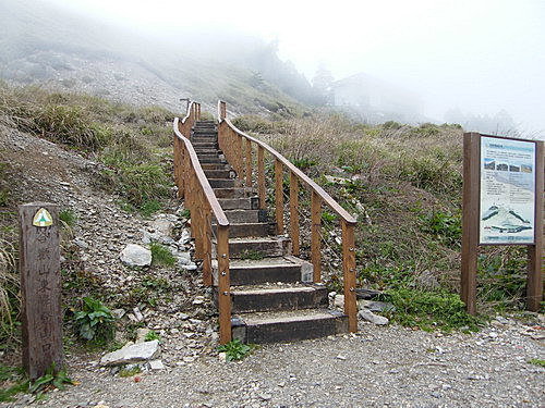 東峰登山口就在滑雪山莊旁,於16:35出發,此時雲霧籠罩山頭,能見度已越來越差: