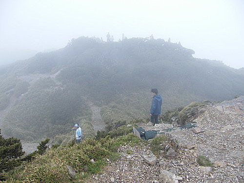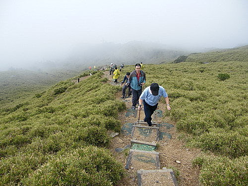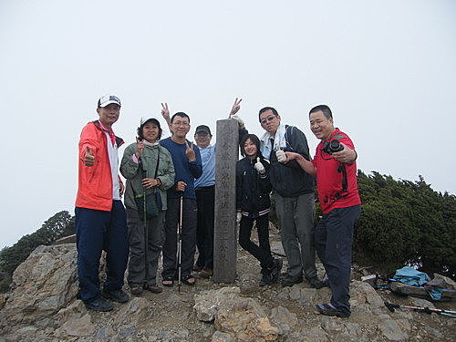 於17:30至合歡東峰,霧茫茫一片,還是吸引很多遊客上山攬勝,我們7位全部登頂: