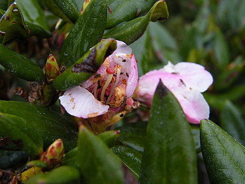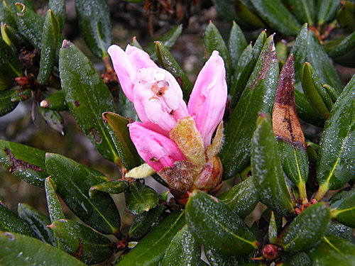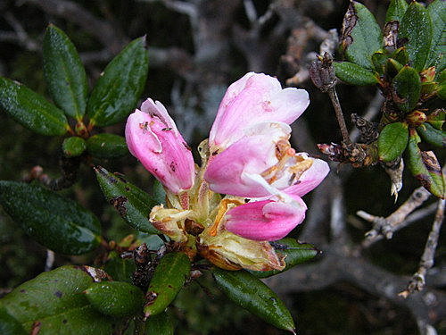 續往東峰,看到幾朵殘破受傷杜鵑,今年合歡群峰杜鵑花況,可能會令很多遊客失望:
