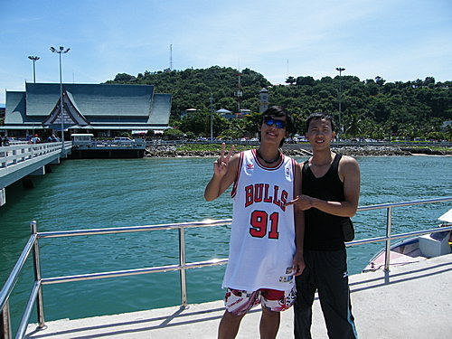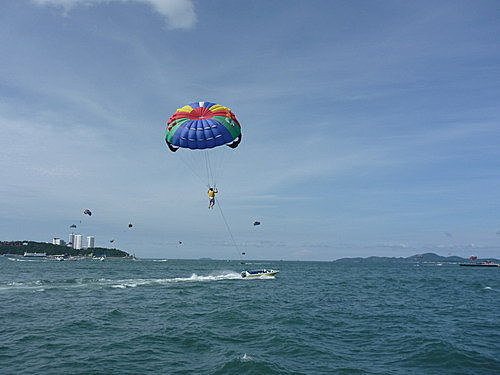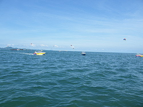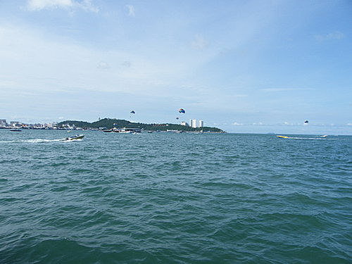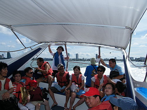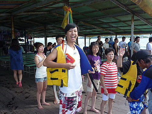 於08:52至暹邏灣搭乘快艇,先至海中的一個大平台,這裡將參加拖曳傘,導遊事先說明注意事項: