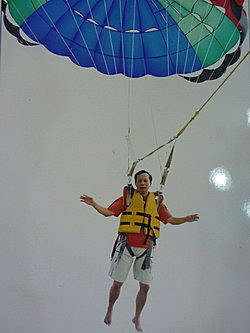 終於輪到我了,跑!跑!跑!飛起來耶!在空中飛呀飛呀,鳥瞰暹邏灣,真的很美很美,可惜不能帶相機,不然我一定拍下來分享大家: