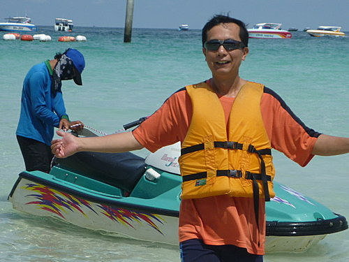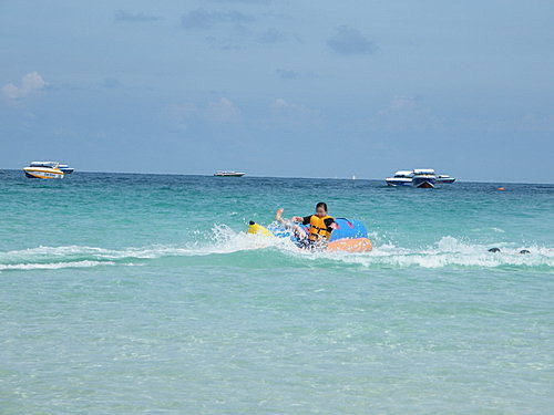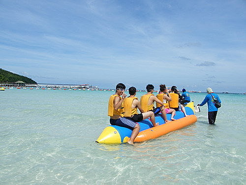 換下泳裝後集合出發,準備進行<噴射型水上摩托車>及<香蕉船>活動: