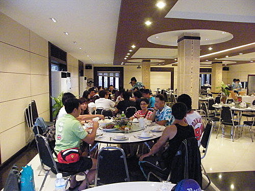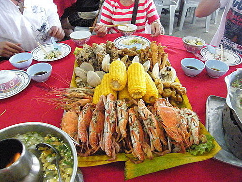 戲水至11:30後需換裝準備用餐,於12:00準時享受島上海鮮大餐+可樂,大家吃得不亦樂乎: