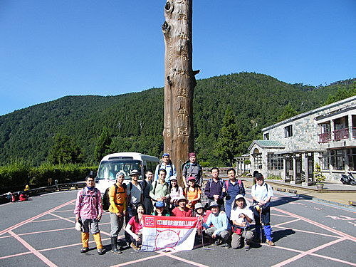 大家下車整裝,08:30出發前,於太平山森林遊樂區前合照: