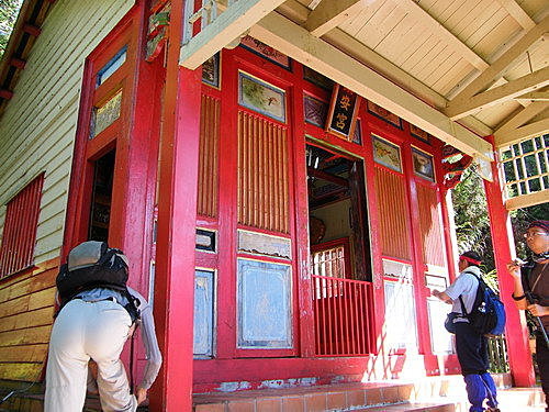 08:43至紅色木造建築鎮安宮,於此小休参訪,鎮安宮係日據時代,日本人在太平山伐木時所建立的神社,光復後改祀鄭成功: