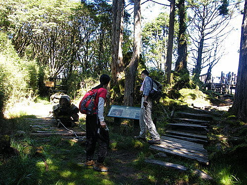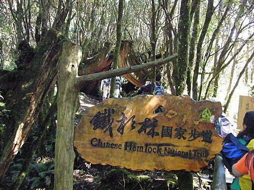 08:53至鐵杉林國家步道起點,旁立解說牌,依木階往上,步道盡是鐵杉原始之美。步道每100公尺均立有里程標示: