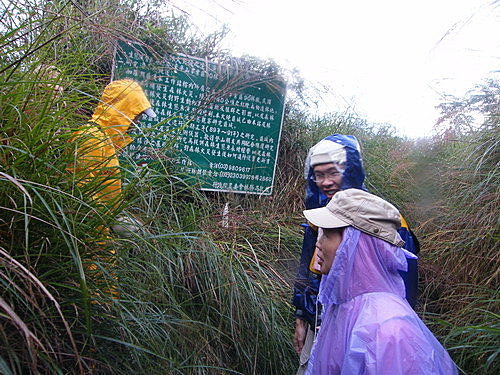 過偉蛋池後,帶著同事穿越密密麻麻高大芒草林,有如走入迷宮,邊走邊喊要跟上,否則看不到前面隊員會迷路,總算於17:05穿越芒草林至林務局綠色『 火災之後生態演替解說牌』,取右行下山: