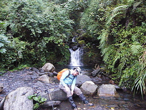 於18:32至加納富溪小瀑布,水質清澈,大家於此稍加清洗登山鞋:
