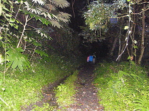 清洗梳洗之後,踢行林道,沒多久天色變暗,一路陡下林道,由於腳趾不舒服,踢起來相當痛苦,終於在20:08至林道柵欄: