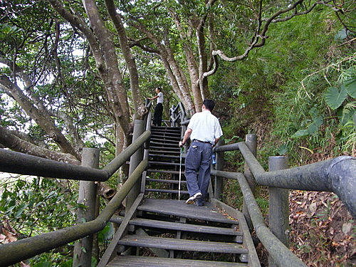 循陡上步道階梯及塑膠階梯扶手而上,設施完善,走起來相當安全,且清涼舒暢,適合帶家人小孩來此一遊: