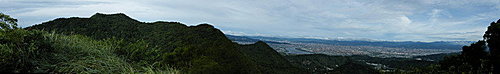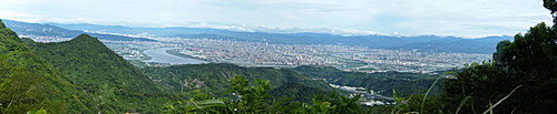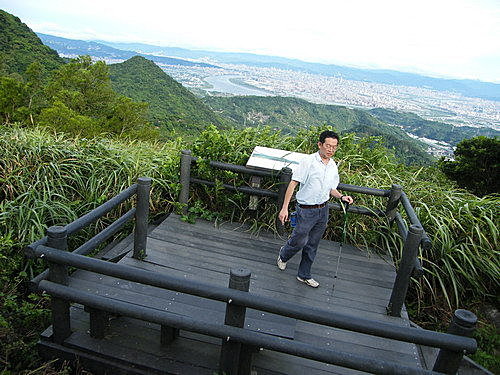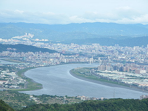 再至出火號觀景平台,今日天空晴朗,全無霧氣,可清晰俯瞰淡水河與台北盆地市區,剛剛登過占山,近在眼前:
