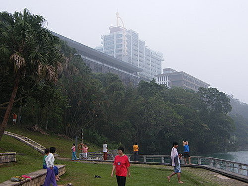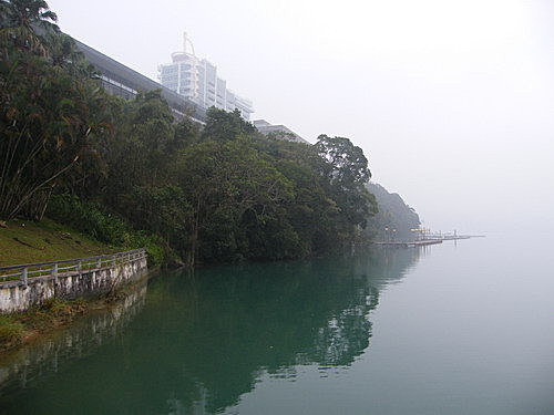 塔頂可俯視日月潭之美,然今日天氣朦朦朧朧,無法山清水秀: