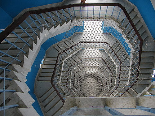 塔上設有祈福鐘,敲幾下後即下樓,往下看塔樓螺旋梯,真是美極了: