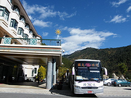 回至旅館後整理行李並於AM10:30退房,預定AM11:00上車集合,往武陵山莊前進,上車前先在富野渡假村前照相留念: