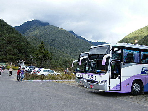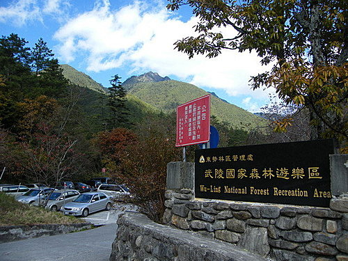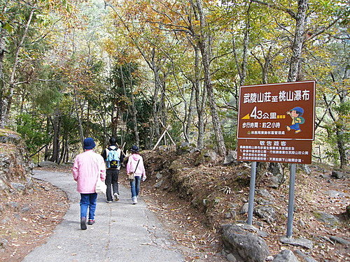 出發前,領隊發給每個人2個麵包,1盒奶茶,1顆橘子,1根香蕉,是今日至桃山瀑布用的午餐,於AM11:10啟程,AM11:32到達武陵山莊停車場,稍事整裝,往武陵山莊前進,於AM11:36到達武陵山莊: