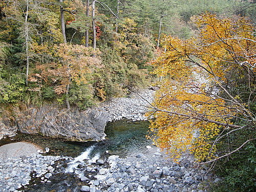 休息至PM13:24就一路趕回,於PM14:12回到武陵吊橋並欣賞一下七家灣溪景色: