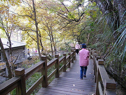 武陵山莊之後即是今日桃山瀑布之行,單程4.3公里,於AM11:42到達武陵吊橋,接著是Z字形的緩坡,全程海拔攀升約450公尺,沿路上,可欣賞樹林之美: