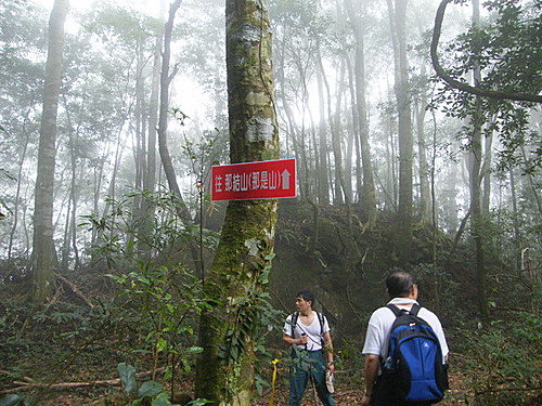 於AM12:13到達三叉路口,“右往那結山, 左往拉號山(良羽鳥山)、榮華山、北橫公路(大灣)”,取右行,再往上亦是三叉路口,有較大平坦之地,此時已是中午12:20,在此用餐,補充體力: