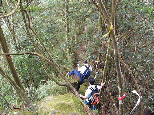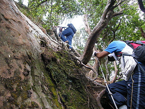 到達那結山之前,還要有個一大岩壁,幾乎成90陡坡要攀爬: