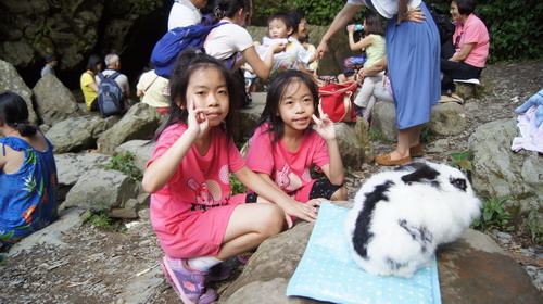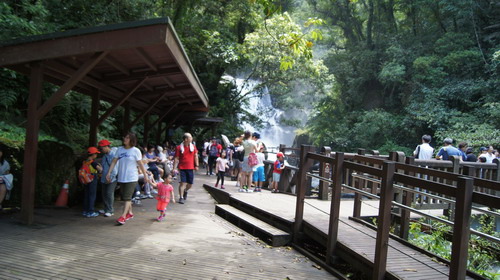 我們購票後直往內洞最豐富負離子瀑布區,今日遊客相當多,大家都來此避暑,跟昔時不同之處,是園區內多設計為無障礙設施,讓行動不便或小孩童,多可坐輪椅來此享受大自然環境: