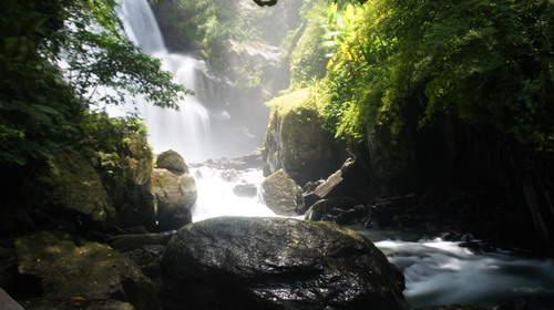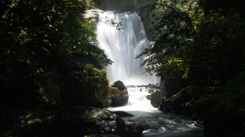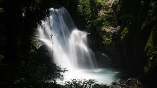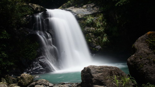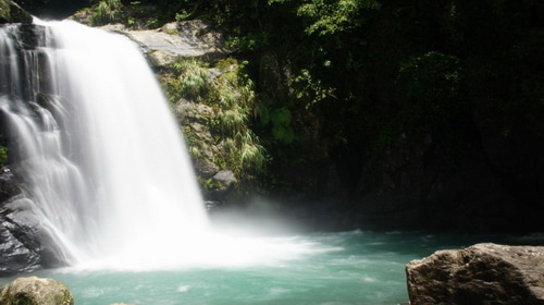 於09:28至第一個昇龍瀑布,水量極大,陣陣負離子拂面吹來,相當涼快,此時拿起剛修好旅遊鏡鏡頭,試拍流水瀑布,焦距有點問題,效果不佳: