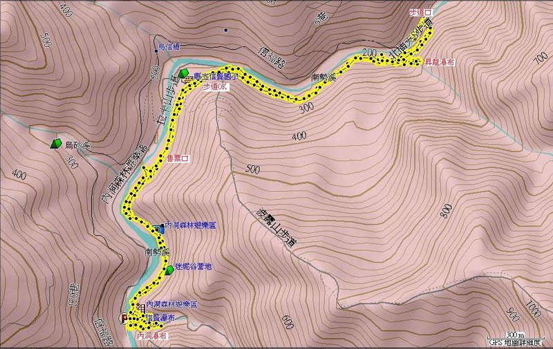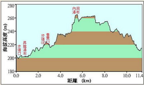 信賢步道口(H200M)至內洞瀑布(H265M),約2小時56分,5.3KM