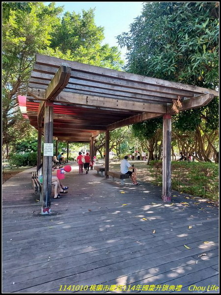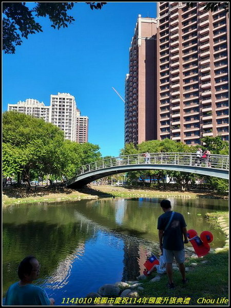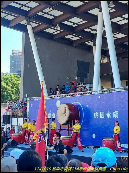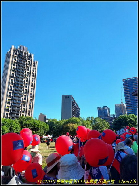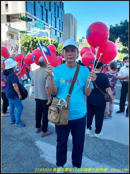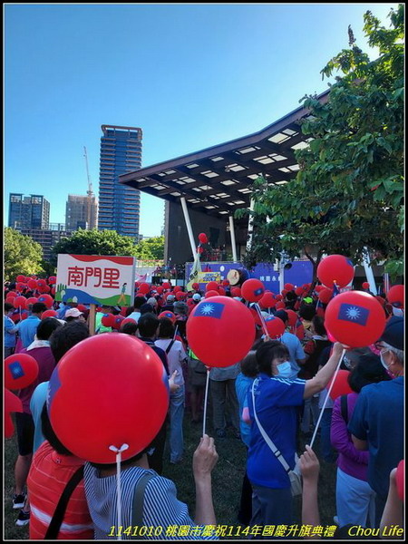 今天一早去參加桃園市慶祝114年國慶升旗典禮,於07:37到報到現場,隨後里長開始發放每人一面國旗,及兩個國旗氣球,里長帶里民至現場,滿滿各里里民人潮,準備升旗典禮,並看表演節目: